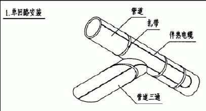 4)直線平行安裝時(shí),伴熱電纜應(yīng)沿彎頭凸面安裝,并在彎頭的兩端及中間作固定 |