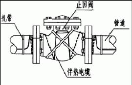 5、一切散熱體(如支架、閥門、法蘭等)應(yīng)按設(shè)計(jì)圖請(qǐng)求預(yù)留所需電伴熱帶長(zhǎng)度,將此段電伴熱帶纏繞于散熱主體上并固定。