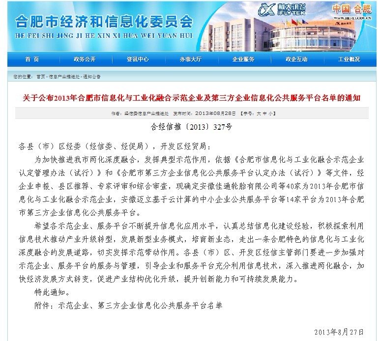 以下為合肥市經(jīng)濟(jì)和信息化委員會(huì)網(wǎng)站公示內(nèi)容: