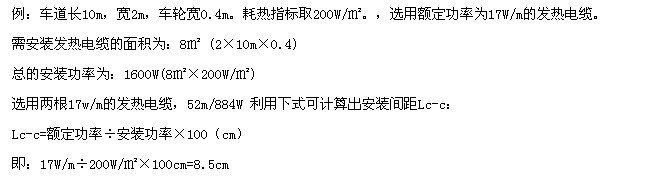 關(guān)于車道融雪化冰,為節(jié)省出資,不用在車道整個區(qū)域鋪設(shè)加熱電纜,通常裝置在車輪通過的當?shù)鼐妥銐蛄???蛇x用單位裝置面積功率為200~250W/㎡,并選用帶地上傳感器的溫控器來操控。
