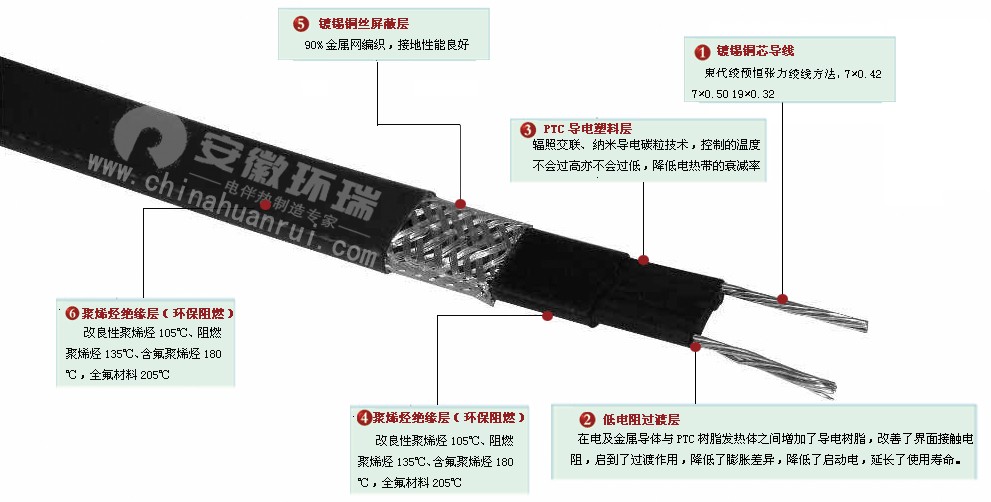 安徽環(huán)瑞自限溫電伴熱帶材料展示
