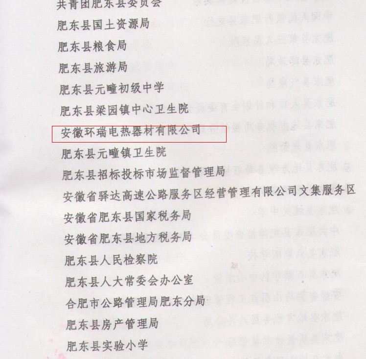 安徽環(huán)瑞電熱器材有限公司有幸成為其中的一員,我們將再接再厲,發(fā)揚成績,為推進社會主義物資文明,政治文明,精神文明和生態(tài)文明建設,構(gòu)建和諧社會的偉大實踐中更好的發(fā)揮示范帶頭作用。做出新的更大的貢獻。提供思想保障,精神動力和智力支持。
