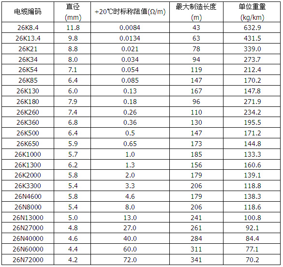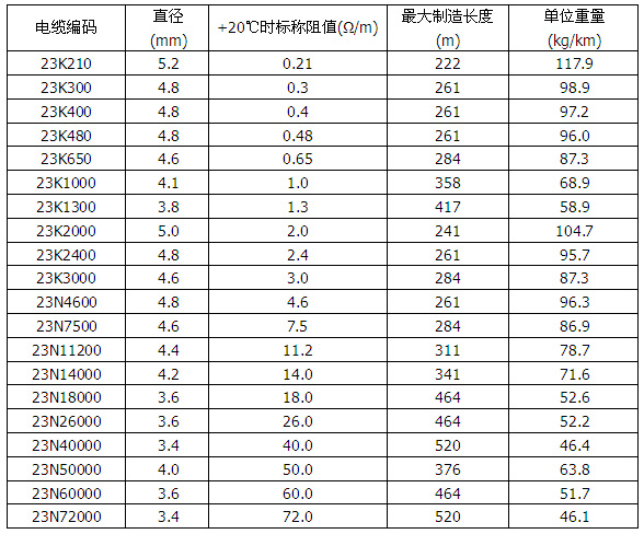 表格2 加熱電纜規(guī)格 (600V 雙芯)