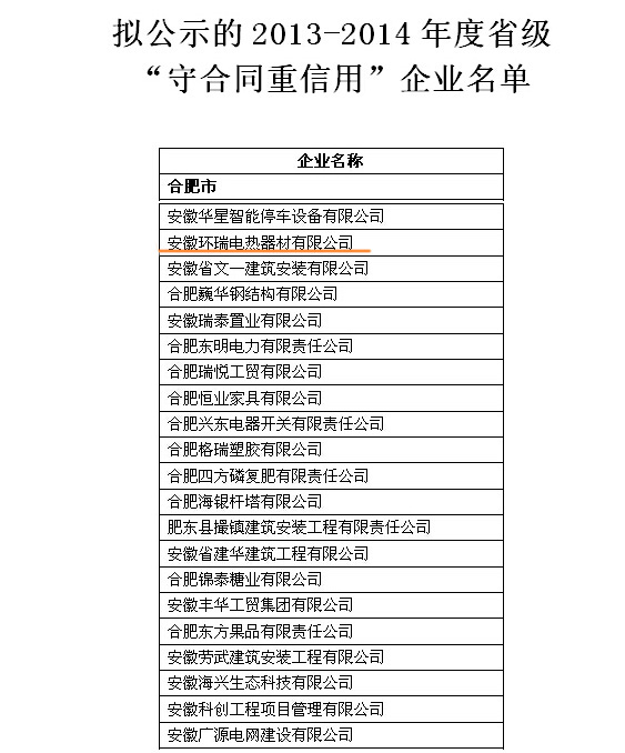熱烈慶祝安徽環(huán)瑞榮獲2013-2014年度省級(jí)“守合同重信用”企業(yè)