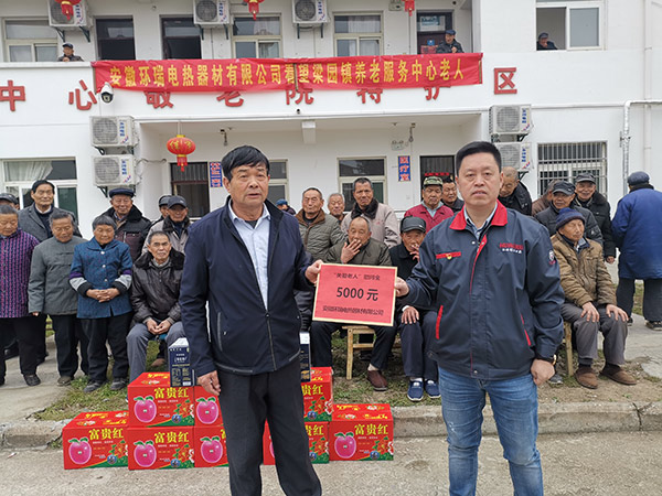 在敬老院的捐贈儀式現(xiàn)場,梁園鎮(zhèn)敬老院負責人對安徽環(huán)瑞電熱器材有限公司工作人員的善德善行表示了敬意和感謝,并接受了安徽環(huán)瑞公司捐贈的物資。