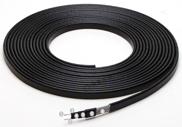 伴熱電纜由納米導(dǎo)電碳粒和兩根平行母線外加絕緣層構(gòu)成,由于這種平行結(jié)構(gòu),所有“鳩茲”牌電伴熱線均可以在現(xiàn)場(chǎng)被切成任何長(zhǎng)度,采用二通或三通接線盒連接。