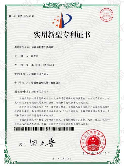 安徽環(huán)瑞單項(xiàng)恒功率電伴熱帶國家專利產(chǎn)品簡介